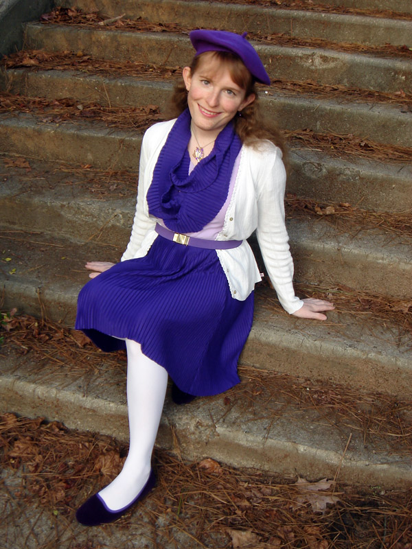 Purple scarf made from bottom of True Freedom skirt from Sears, 2012