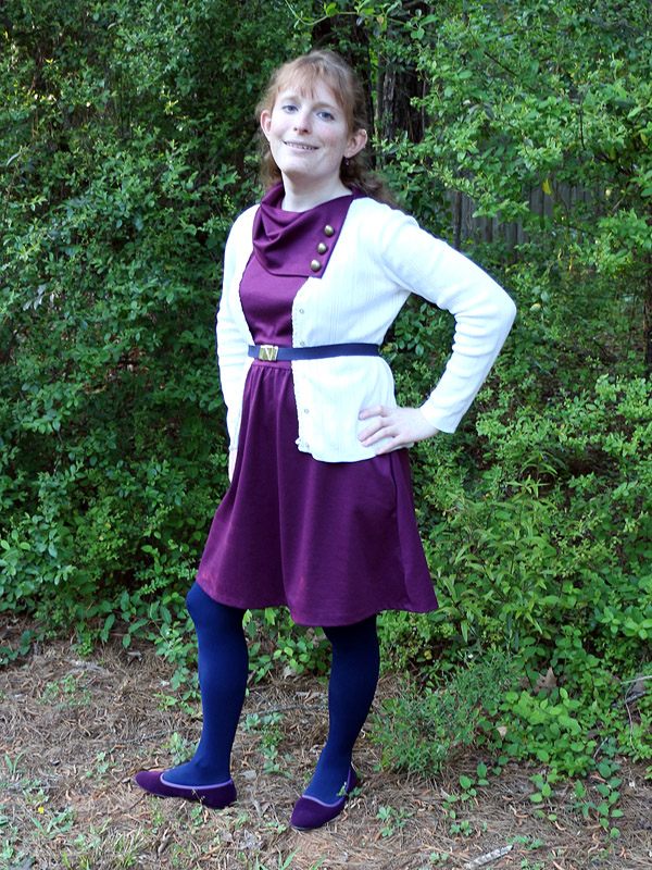 I bought two new "Coach Tour" dresses from Modcloth over Thanksgiving, this one, in "Violet", and another, in "Spearmint". They didn't seem quite as nice as the "Bleu" I had bought a year earlier, so I carefully inspected them. Every hem and every seam appears to be identical, but the new dresses are made with a slightly thinner and shinier material that looks cheaper. I wonder if the new colors were always that way, or if lower quality fabric was substituted when the style became popular on Modcloth. Don't get me wrong; I still like the dresses and expect to get a lot of use out of them. But my temptation to continue buying more colors in the style has greatly waned.