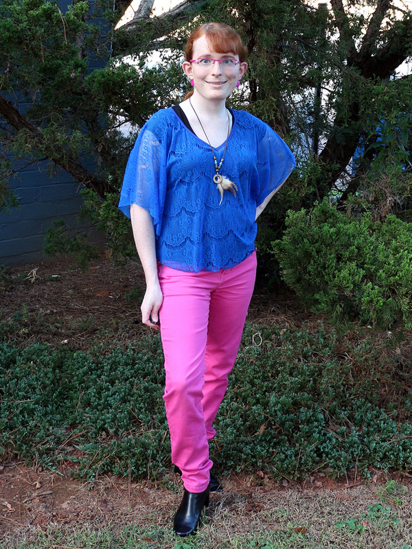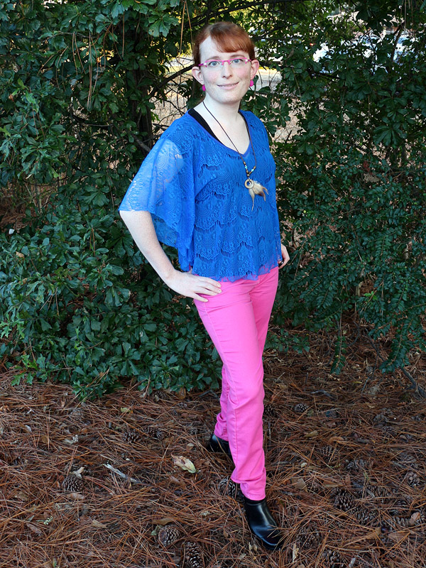 Years ago, my favorite Youtube vlogger, who has long since left Youtube, wore glasses identical to these. They had already been discontinued in this color even then, but she mentioned the model name once in the comments and I managed to locate a pair on eBay. They were quite a departure for me at the time, so I decided to wait on buying prescription lenses until I was sure I liked them. By the time I was sure, I was so accustomed to wearing them with my blue contacts that I decided to stick with flat lenses. So yes -- I'm nearsighted and I still wear vanity glasses.