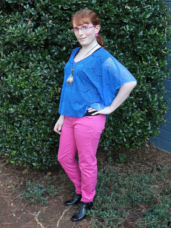 I wanted jeans in various bright and bold colors for several years, but couldn't find them anywhere. Two years ago, stores suddenly broke out in them. I initially thought colorful jeans were an isolated incident, so I bought from the very first brand I saw, despite the awkward fit and lack of stretch. I've tried on two dozen brands since, but they all have similar fit issues, usually worse than the ones I bought. As far as I can tell, vividly colored skinny jeans are not available for women who need a curvy fit. So I haven't bought more and rarely wear these.